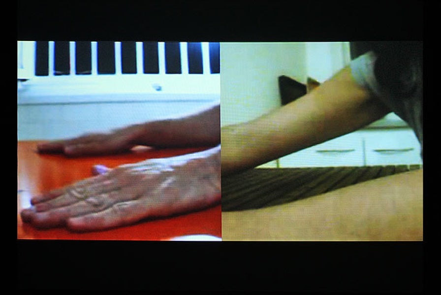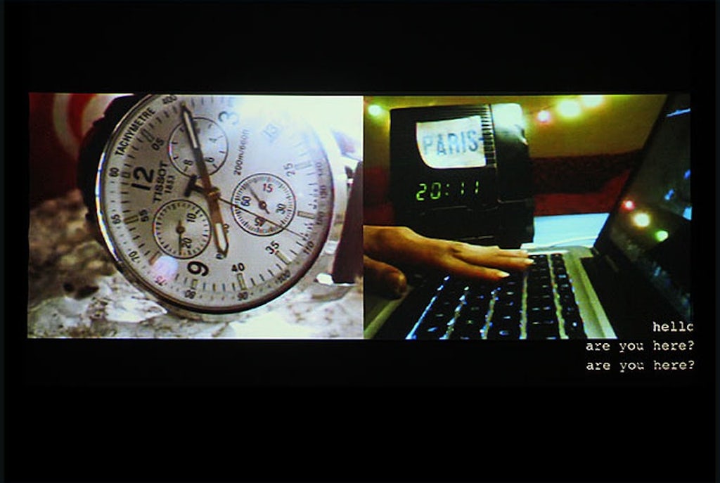 The online dance performance Here(s) of the inseparable artist duo Selma and Sofiane Ouissi took place during in October 2011 during the opening of the ‘Meeting Points 6’ festival, an initiative of the ‘Young Arab Theatre Fund’. Sister and brother Sofiane en Selma gradually formed from one performance to the next a single body through their shared practice as dancer and choreographer, until Selma moved to Paris and Sofiane was left alone in Tunis. Thanks to real-time video communication applications they managed to bridge the distance between both metropolises and thus found a way to reconstitute their shared practice and reflection. During Here(s) they share this initially rather practical communicative bridging, which gradually grew into a full-fledged choreography.