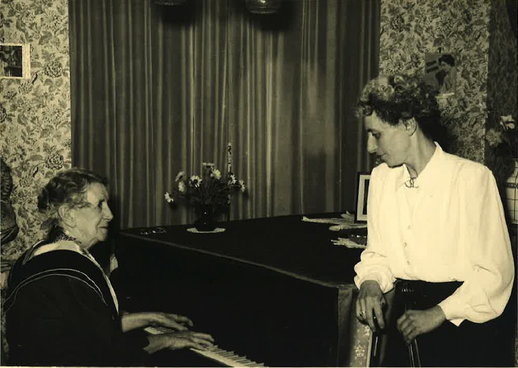 In Vlaanderen was Yvonne Van den Berghe (1908-2004) een spilfiguur voor het verspreiden van het repertoire van vrouwelijke componisten. Er is zeer weinig informatie over haar bekend, maar we weten dat zij pianiste was en daarnaast lesgaf. Ze voerde samen met onder andere het omroeporkest van BRT werk uit van haar pianoleerling en componiste Nini Bulterys (1929-1989). Nini won verschillende prijzen waaronder de Prix de Rome en behaalde de tweede prijs bij de Koningin Elisabethwedstrijd voor compositie. Ze was op haar beurt leerkracht fuga en contrapunt voor verschillende Vlaamse componisten die ook in In gesprek met … aan bod komen. Nini was hulpprogrammator bij de BRT. Een unieke positie als vrouw in die tijd.